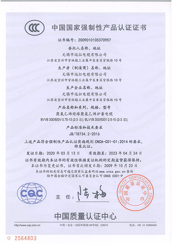 中國國家強制性產(chǎn)品認證證書(shū)